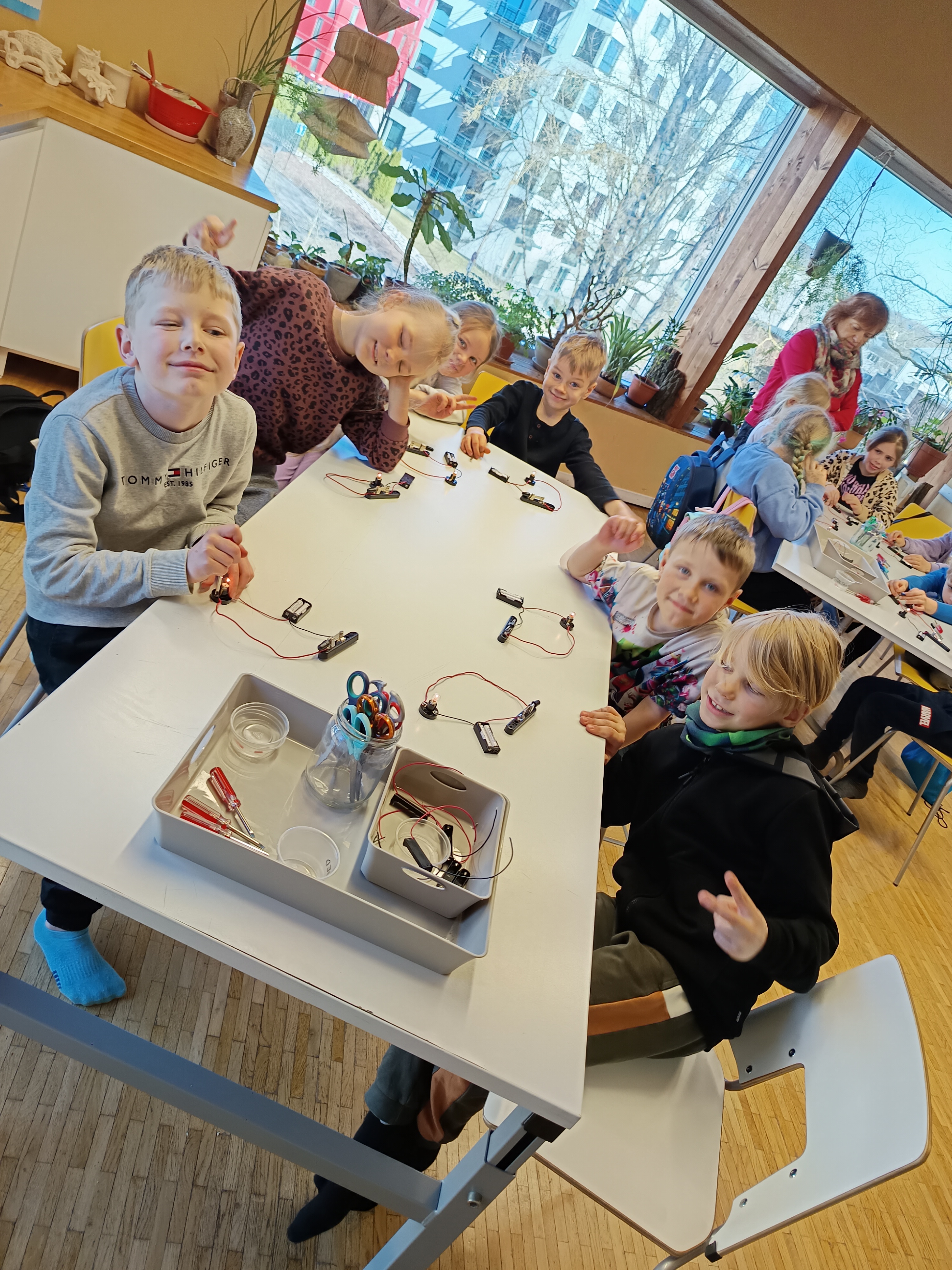Ülesandeid oli erinevaid. Esialgu pidid lapsed kahe juhtme ja patarei abil hõõglambi põlema saama.