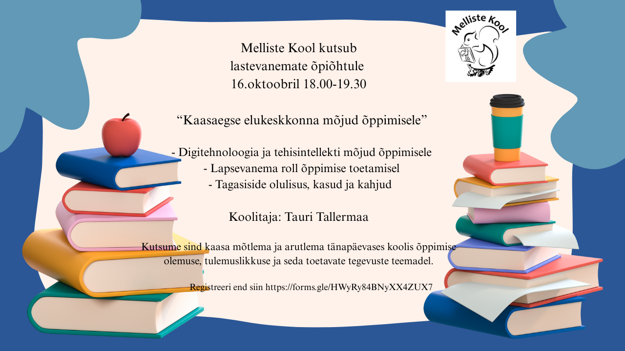 Melliste Kool kutsub lastevanemate õpiõhtule 16.10. kell 18.00-19.30