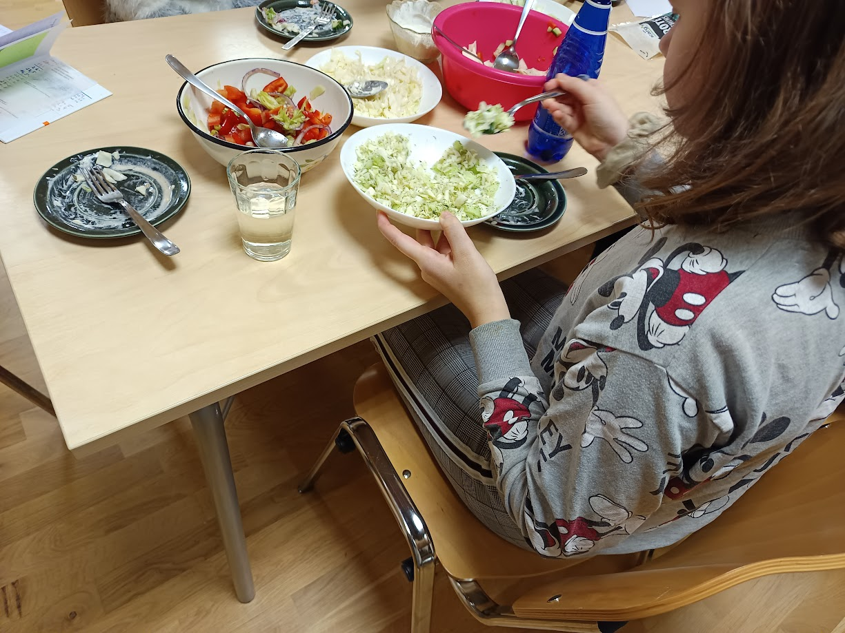 Meie klassis võitis Sebastiani retsept, mille esitasime kokkadele, kes varsti valmistavad salati ette, et kõik õpilased ja õpetajad saaksid seda maitsta.